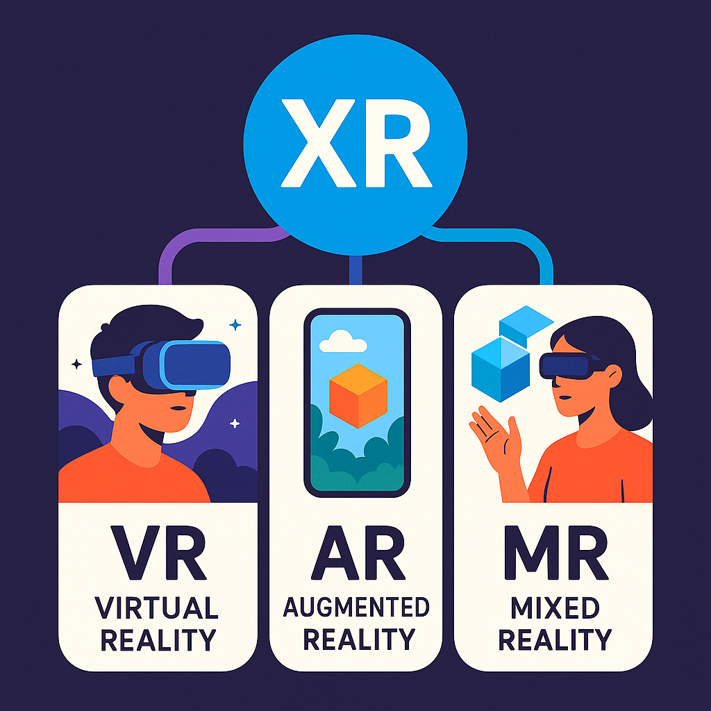 XR หรือ Extended Reality คือคำเรียกรวมของเทคโนโลยีที่เชื่อมโลกจริงกับโลกเสมือนเข้าด้วยกัน XR เป็น \"ร่มใหญ่\" ที่ครอบคลุม 3 เทคโนโลยีหลัก: